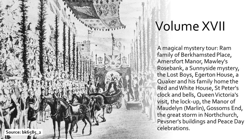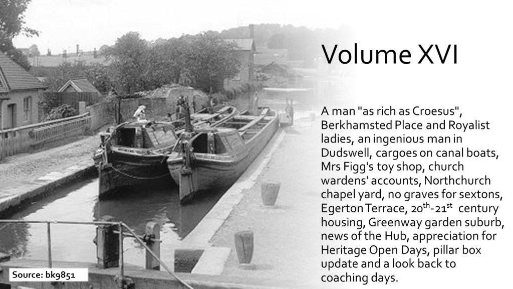 Members of Berkhamsted Local History & Museum Society have produced a wide range of articles of local interest in the pages of The Chronicle for over twenty years (some back copies are still available at £2.50 or £3). Since the Chronicle Contents were first published on this website, we have received many requests from all over the world for more details, especially for articles which highlight the lives of local families and social history. You can also enjoy highlights from the Chronicle Tailpieces. Now available is Bill Willett’s new Chronicle Index.